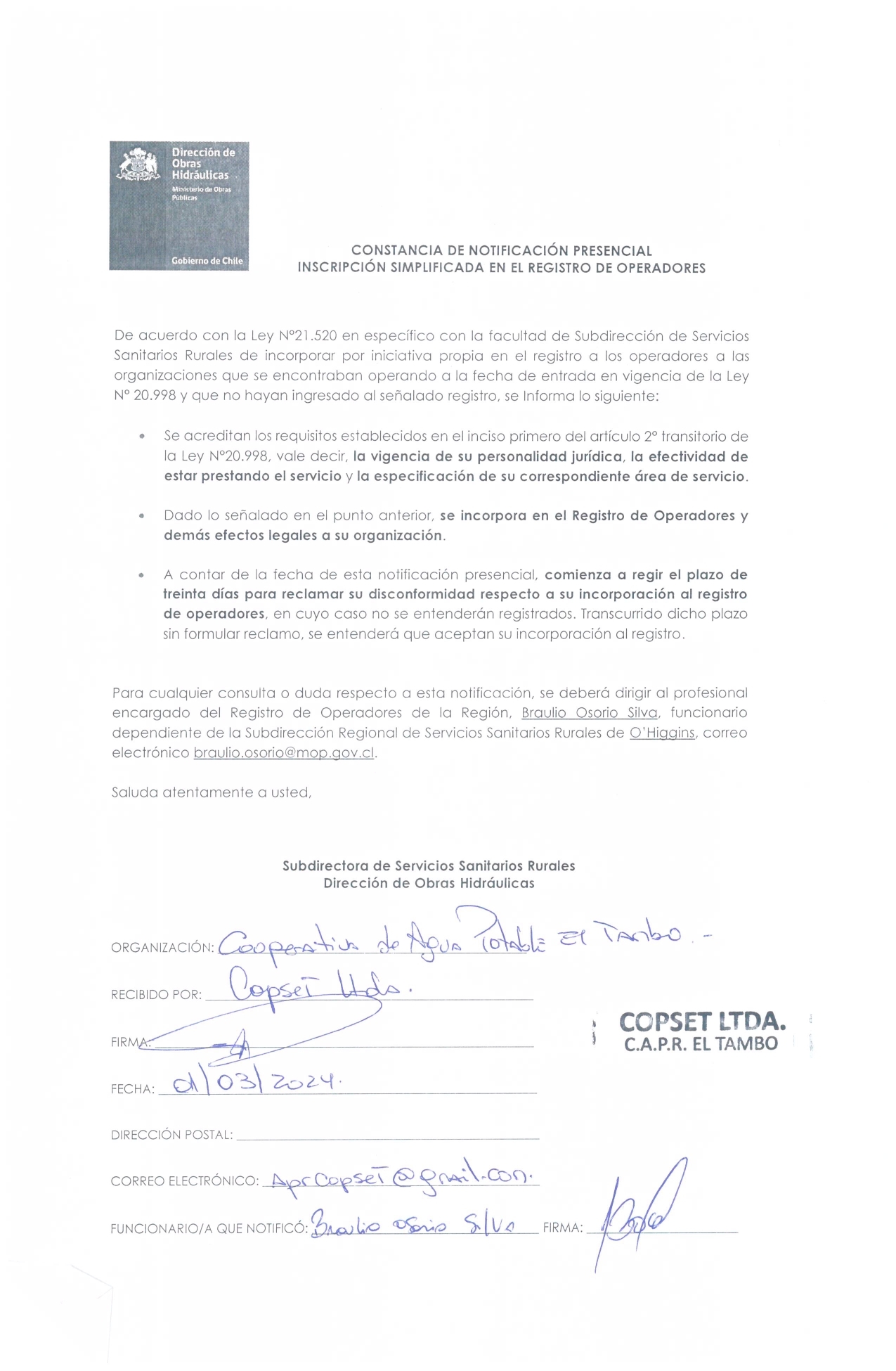 REGISTRO DE OPERADORES